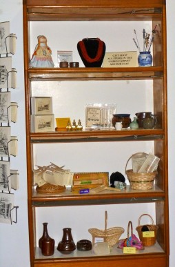 The new Chinese Display features items on loan from Susan Bramson which were brought back from China by her grandfather during the Boxer Rebellion. These include, among others, a two piece silk garment, a headdress, and a pair of red wedding shoes. In addition, two interesting pieces on display, found locally, are a bronze turtle →