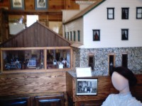 Large model of the Coulterville Hotel and Wells Fargo buildings as they existed before the fire of 1899. The model was made in memory of Dr. Ernest Braun. His wife Dorothy, assisted their son Jim and his family as they researched, designed and built, this historically accurate model of the Coulterville Hotel. Completed January 19, 1997, the model took over 4000 hours to build.
